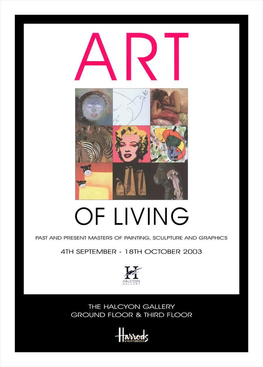 For two months, Harrods will present a spectacular backdrop of paintings, sculpture and drawings from the world’s greatest talents past and present. And, not only will you be able to view this unique collection at your leisure, but you can also see new works of art being created. The Halcyon Gallery is a great believer in nurturing new talent, and during ‘Art of Living’, you can meet many of the artist currently creating works which are destined to become the masterpieces of the future. This catalogue gives you a taste of the magnificient collection of art that awaits you at Harrods, but we urge you to come into the store yourself to really experience the ‘Art of Living’ - and how Harrods can help you to make your world a more beautiful place.